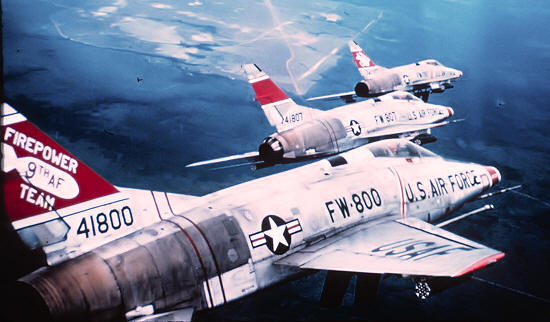 Anyway, this sheet covers specially marked 333 FDS plane that was involved in a weapons meet during 1959. Somewhere I have a slide that shows one of these birds and I'll post it if I can find it (see below and do NOT use the slide to base colors as the shades have shifted a bit over the years). The aircraft also has red wing tips which will need to be painted by the modeler.