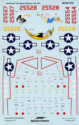 The last is another OD aircraft, and also from the 6 NFS on Saipan in 1944. 'Jap Batty' is credited with two kills and it is this set of markings for which the yellow serials are supplied.