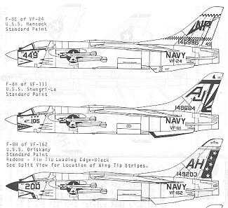 First option is for an F-8E from VF-24 aboard the USS Hancock. This unit was responsible for several MiG kills and the unit's total was displayed on the ventral strake.