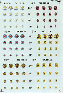 Microscale sheet that contains squadron badges for six units in four sizes: 12,