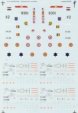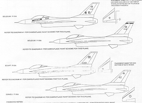This rather elderly sheet covers four F-16A Falcons delivered to various countries in the late 1970s and early 1980s. Most are in the standard scheme of FS 36118/ 36270/ 36375, otherwise known as the 'three greys' scheme.