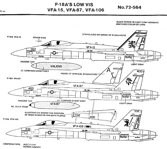 Here is one from the early days of Superscale after the split from Microscale. It has three F-18A Hornets, all in the standard scheme of FS 36320 over FS 36375. No kit is specified but considering how the markings are on this one, it really doesn't matter as long as it is 1/72.