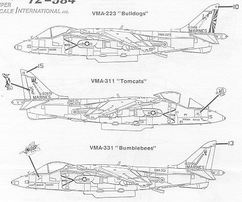 This sheet is from the first AV-8Bs so is in the very old scheme of FS 36173 Dark Grey/34079 Dark Green in a wrap-around camouflage scheme.