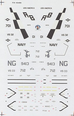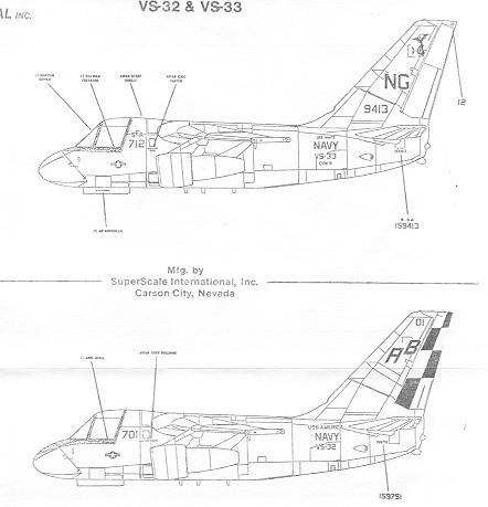 First up is the VS-33 'Screwbirds' S-3A aboard the USS Nimitz and homeported at NAS North Island. You'll be interested in knowing that when these planes were in the overall light gull grey camo, when looking at a line-up of 6 planes, no two 'screwbird' markings were exactly the same. The result of being pretty much hand painted. This representation is an S-3A so no kit mods are really needed.