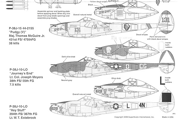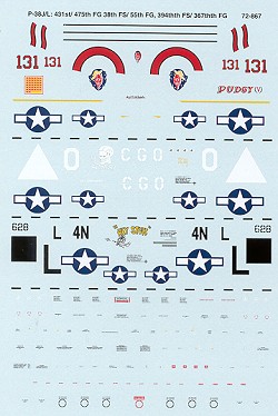 How about another fine sheet of P-38s. This one is for the P-38J and the recommended kit is actually not listed, but I'd bet that the Academy kit will be the choice of many. Other options are Hasegawa, Frog, and Airfix, to name a few.