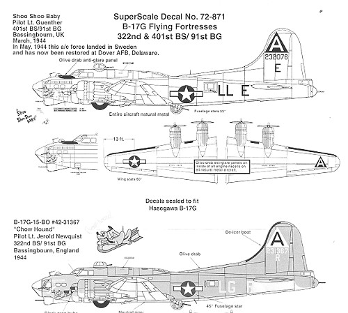 First up is a preserved B-17G, 'Shoo Shoo Baby' from the 401 BS. It force landed in Sweden during early 1944. This aircraft was restored to flying condition at Dover AFB and is now in the USAF Museum, though in OD paint.