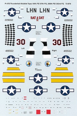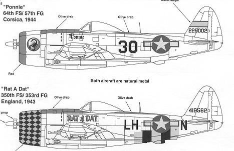 The other is 'Rat a Dat' from the 350 FS/353 FG in England during 1943 (naah, that must be 1944 as I don't think bubbletops reached Europe until then). Anyway, it has D-Day stripes and a yellow/black checked cowling. The instructions go into great detail on how to apply the cowling stripes.