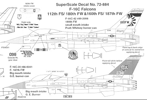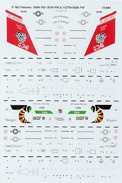 The other is an F-16C-30 from the 160 FS. According to the instructions it is a big mouth intake with GE engine, but I've had conflicting reports in this area when I posted the 1/48 sheet review as this is actually a small mouth aircraft. Regardless, its red fin makes for a most fetching scheme.
