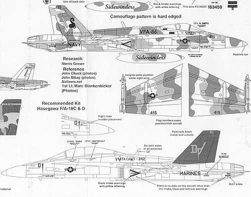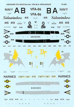 The second is an F-18D from VMFA-242 and is the commanding officer's plane with a black fin on both sides. A very nice scheme for your next two seater.