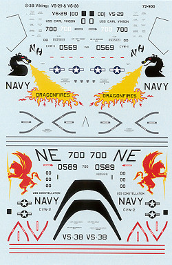 The other is a one-off SSU Viking with VS-29. This is basically a radio relay aircraft used to help plot positions during the Iraq invasion. It needs to have a small antenna bulge on the lower gear door and both need GPS antennas added, though neither shows one. This is also a CAG bird with fin and stab tips in black.