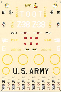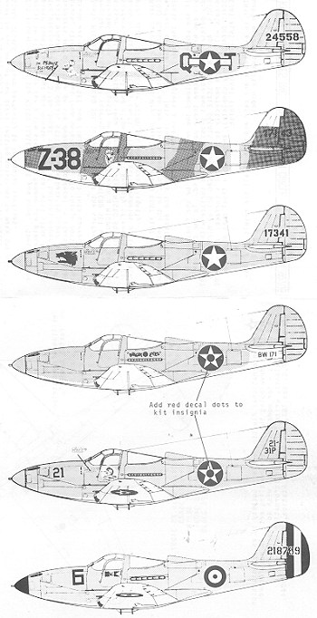 Finally, a French P-39N from GC 1/4, also in standard US camouflage. The modeler will have to paint the rudder stripes and scrounge some roundels from an alternate source.