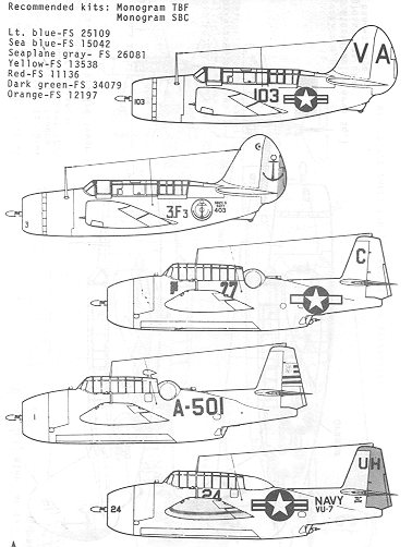 Here is yet another very early Microscale sheet. This one covers some SB2C and TBM aircraft. The recommended kits for these are both by Monogram, but if doing these today, the ProModeler kit would be the choice for the SB2C (though it would need some modification) and the Accurate Miniatures TBM would be the one used.