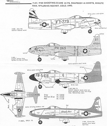 The next three are all P/F-80As There are some subtle differences between the early aircraft and the Monogram kit. I'd recommend a good reference before starting any of these schemes. Often early planes were retrofitted with things from newer builds so a reference is paramount. Never trust decal instruction drawings as they are just for a general reference.