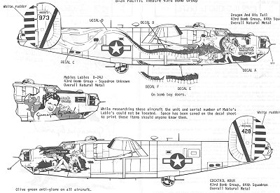 For kits, you have a choice of Monogram or Monogram. They are the only ones that have produced this and other large US bombers. Though old, they still make excellent models. We can be thankful that they were done at all! Insignia for these markings will have to come from the kit or other sheets as there just wasn't room on either sheets for them.