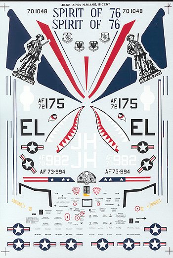 First on the sheet is a very nice Bicentennial A-7D from the 188 TFS New Mexico ANG. The aircraft is mostly white. You will have to paint all of the stripes except the tail ones.