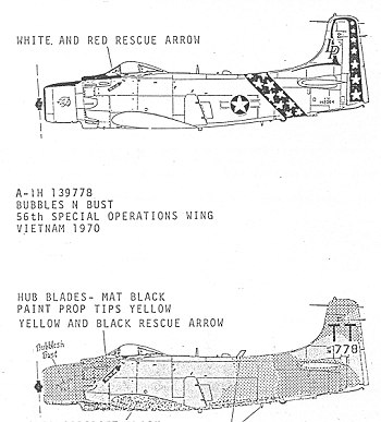 The other is a rather featureless A-1H, 'Bubbles N Bust' of the 56th SOS in standard SEA camo except for the black underside and no national insignia.