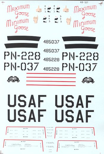 All the markings except the insignia are on the sheet allowing you to do both aircraft. Overall a nice sheet of America's first production jet fighter.