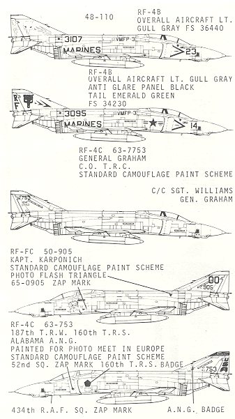 Anyway, this sheet covers five recce birds; two USMC RF-4Bs and three USAF RF-4Cs.