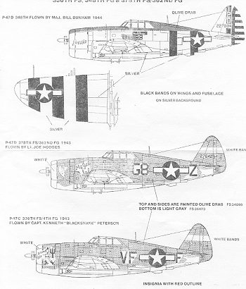 Finally, there is 'Arizona Pete' from the 336 FS/4 FG before they transitioned to the Mustang. What makes this plane interesting is that it used the short-lived red surround insignia.