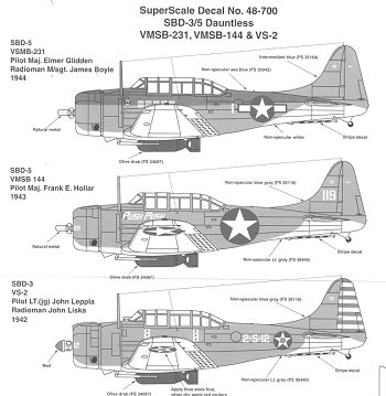 Superscale offers three of them on this particular decal sheet, one SBD-3 and two SBD-5s.