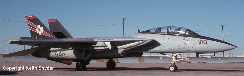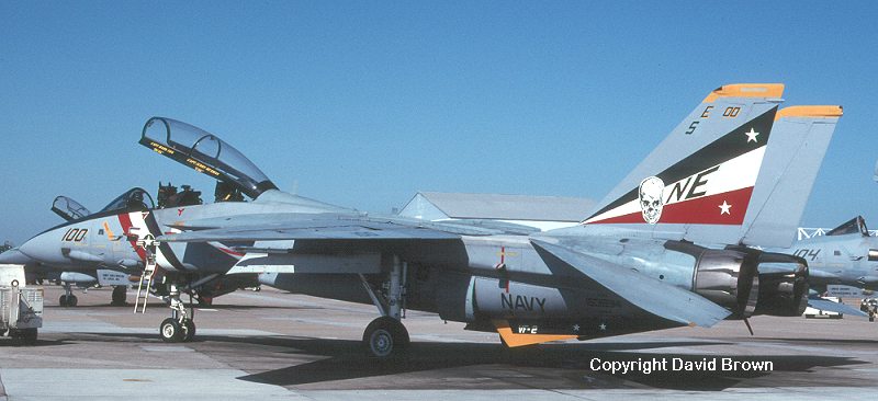 The other Tomcat is an F-14A from VF-201, a reserve squadron out of JRB Fort Worth. This is also in a tactical scheme of FS 36118 uppers with 36375 lower surfaces. The tail is black as is the fuselage strake. Unlike the VF-2 bird, it has low visibility insignia. Unusual for a reserve squadron, there is a ship name on the wing strake. I'm not sure if VF-201 is still flying the Tomcat or not. Perhaps a reader can enlighten me.