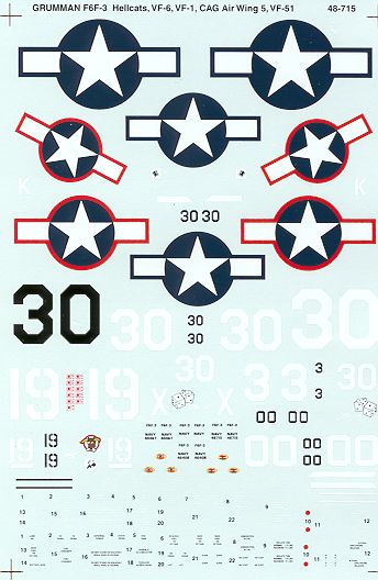 In Superscale's resurgence of producing a goodly number of new decal sheets, they have done a triad of Hellcats. This first sheet is for the early versions, the F6F-3. You will recognize a number of the subjects on this sheet and while some have been offered as kit decals, it is nice to have quality replacements for what are often too thick kit decals.