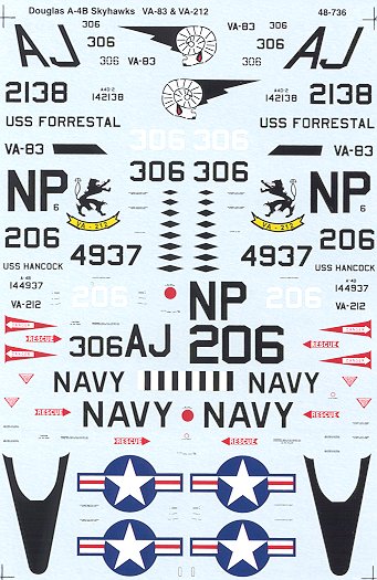 First is a VA-83 Scooter with the unit's ram head boldly displayed on the fuselage side. The decal sheet also includes the rudder diamond markings and black fin stripe.