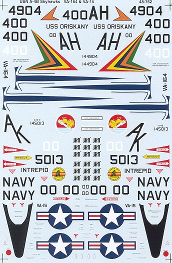 There are complete markings for both birds though you'll have to scrounge national insignia from the kit for the second model, should you decide to go that way. Either set of markings will look just super on your next A-4B model.