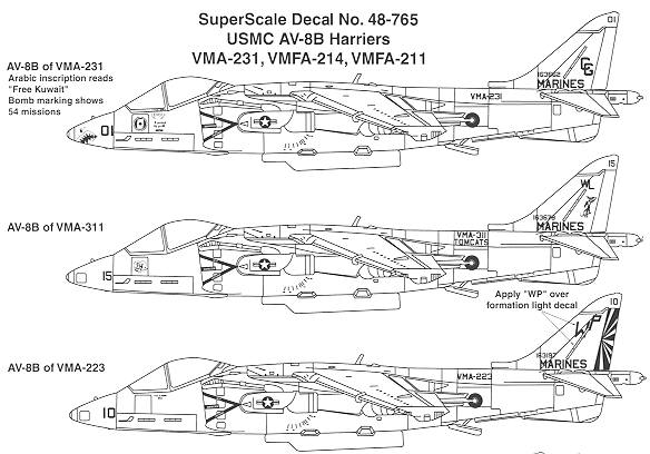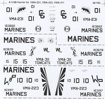 There is only one kit for the AV-8B in 1/48 and that is the Monogram kit. It builds into a pretty nice model with a little bit of work. The nice thing about this sheet is that, unlike some other AV-8 sheets, it can be used on the Monogram kit as is. No need to buy a bunch of aftermarket stuff to make the sheet usable. If you have the Monogram kit, then you know how much the kit decals need replaced. This is a good sheet for that purpose.