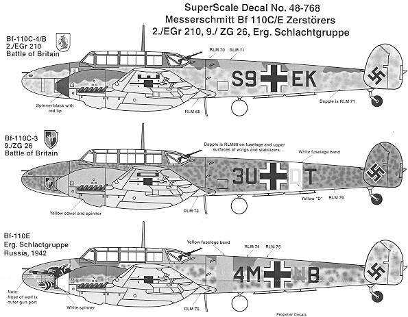 second sheet on the Bf-110. This one has some later aircraft on it that show the