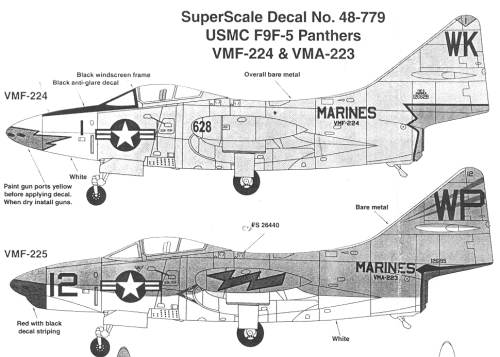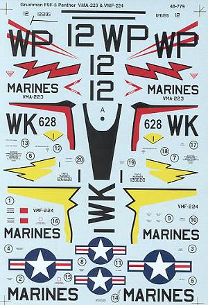 This particular sheet includes two USMC squadrons, neither one of them in the overall gloss sea blue.