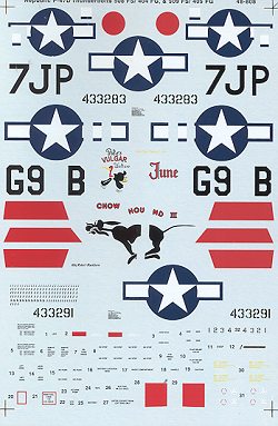 This particular sheet covers two 'bubbletop' P-47s. Both are relatively late war planes so are in overall natural metal.