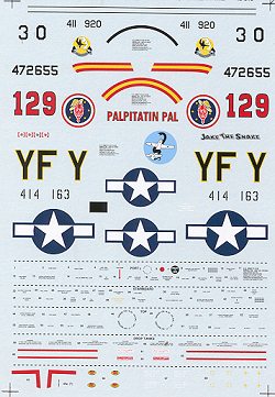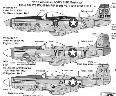 Finally, the lone recce Mustang or F-6D. This one was with the 110 TRS in the Philippines so will need to have the wing stripes painted on. Though there are aftermarket camera ports around, these can be just as easily made by the more experienced modeler.