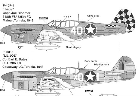 The other is 'Lil Joe III' from the 79th FG. This is in RAF equivalent colors of Dark Earth and Middlestone over Azure Blue. As with the previous aircraft, the spinner is in red.