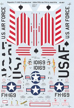 The sheet has all you need to make a great model including a healthy number of stencils and something I didn't have when I did my model, a useable stencil application guide! The sheet is fitted to the only kit done in 1/48, the Revell/Monogram version. All in all a nice sheet and one that I hope folks will use!