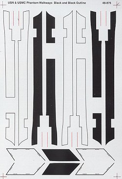 Superscale has released yet another sheet of F-4 Phantom II Walkway markings for us. Staying with USN/USMC birds, these are all black and in both the 'filled in' and outline versions. RAT door warning markings are also included. This is great and something that all F-4 modelers should grab up while they are still available. It has been quite a while since these were last available from Superscale and I know that I've used up all that I hoarded from many years ago! There are enough for three complete aircraft with an extra intake walkway. They should fit on every 1/48 F-4 that is out there.