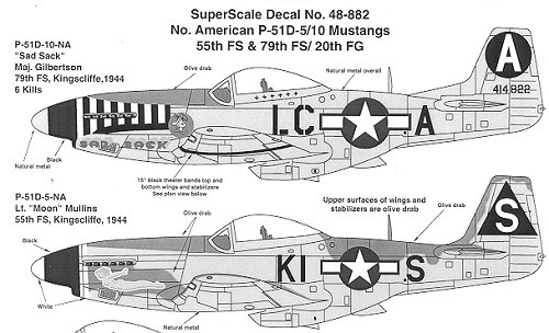 First up is 'Sad Sack' from the 79th FS. It has a black and natural metal spinner with the usual black and white squadron markings on the nose. It carries Mustang ID stripes on the wings and stabilizers.