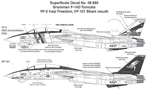 The VF-2 bird is from the USS Constellation during the invasion of Iraq in early 2003, which was their last F-14 cruise. There is a large tally of mission marks on the nose of the aircraft. The unit now transitioning to the F-18F.