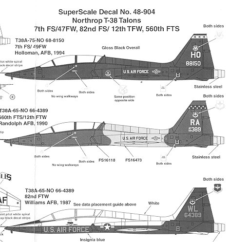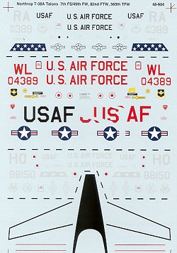 The sheet itself covers three of the more modern paint schemes worn by the T-38.