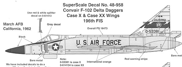 first of two F-102 sheets, this one covers two aircraft of the 196 FIS,