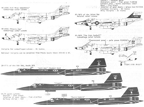 The three SR-71s are all from the 9 SRW at Beale AFB. You get three names planes on this sheet; Ichi Ban, Flower, and Rapid Rabbit.