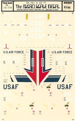 A set of the unusual white insignia and USAF markings is provided for the SR-71s. For the Voodoos you'll have to use kit decals or another sheet for the insignia.