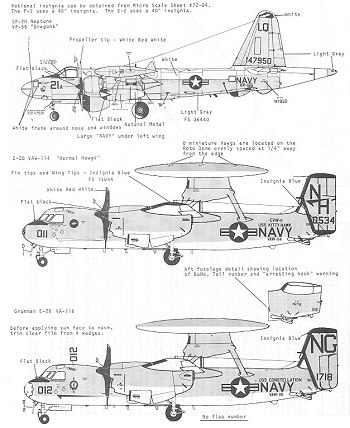 The first E-2A is from VAW-114 'Hormel Hawgs', and has little hawgs on the top of the rotodome.