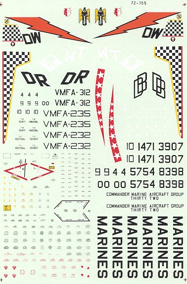 There is enough stencil data for one aircraft, and enough Marine markings for three. Insignia will have to come from another source.