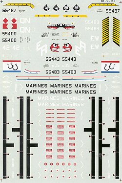 The sheet provides lots of stencils, seat belts, and wing walk decals. Insignia will have to come from another source.