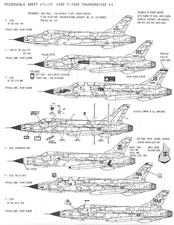 First off is a 49 TFW 105D in very plain markings. It only has a serial number on the tail and a set of all black insignia on the lower rear fuselage. No indication if these were also carried on the wing, but it doesn't matter as the sheet only gives two.