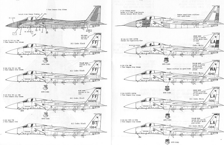 Moving to the 36th TFW, is this F-15A. All squadrons in the 36th TFW has equally boring planes with nothing to differentiate them from factory fresh but a tail code. Shortly after this sheet was printed, wing badges and squadron colors were applied.