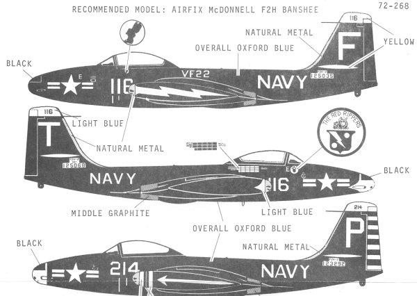 Finally is the scheme that I used on my most recent Banshee of about 6-7 years ago and that is P/214 of VF-62. This is arguably the most colorful of the three schemes with its tank bands and striped tail.