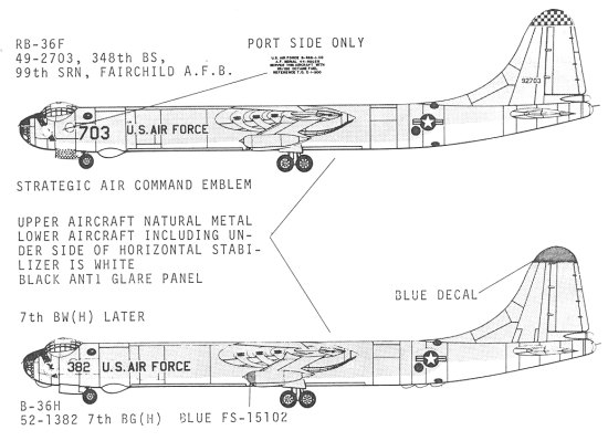 First plane is an RB-36F from 348 BS(shouldn't that be RS?)/99 SRW. It carries a very nice checkered tail top and nose gear doors.