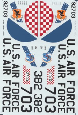 The other aircraft is a B-36H from the 7th BW and has a blue fin tip and blue jet engine pod intakes. The instructions state that this plane has the anti-flash white undersides to the fuselage and the horizontal stabs.